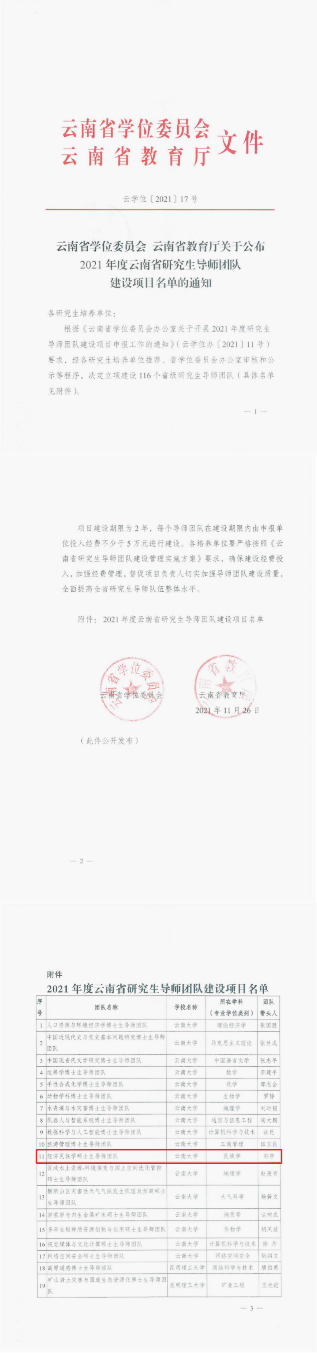 郑宇老师的经济民族学硕士生导师团队获2021年云南省研究生导师团队建设项目