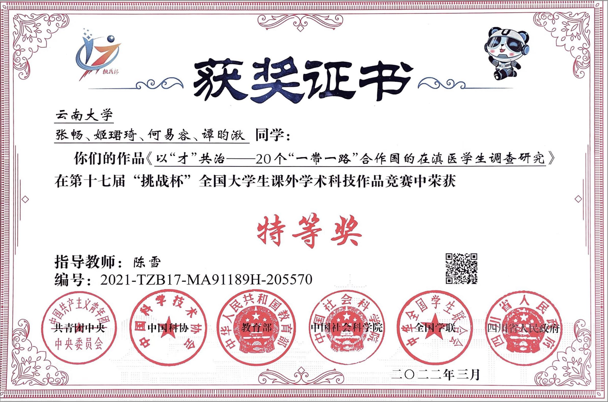 第十七届“挑战杯”全国大学生课外学术科技作品竞赛特等奖