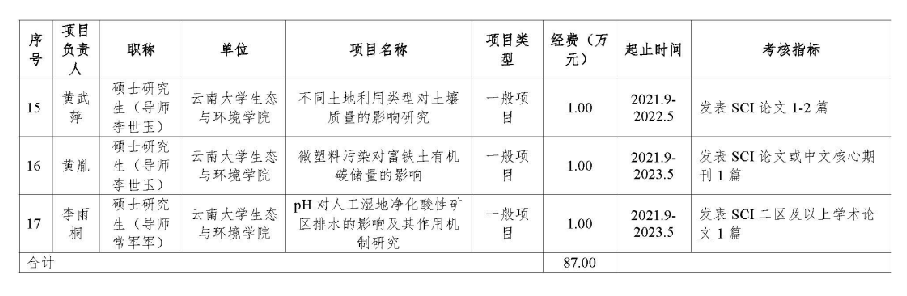 g) 李雨桐. pH 对人工湿地净化酸性矿区排水的影响及其作用机制研究.云南省高原山地生态与退化环境修复重点实验室开放基金课题.2021