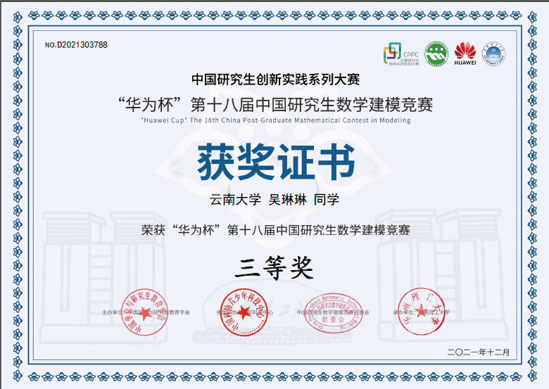 下一篇:李建平老师指导研究生获“华为杯” 第十八届中国研究生数学建模竞赛二等奖