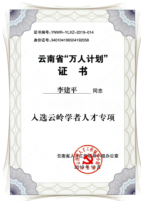 上一篇:李建平老师获云南省高校教师教学名师奖证书