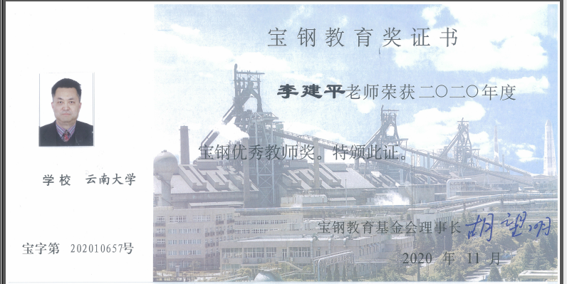 下一篇:李建平老师获云南省高校教师教学名师奖证书