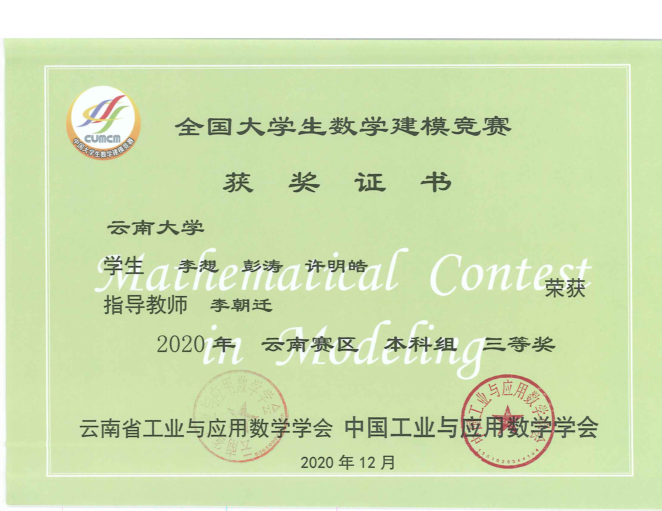 上一篇:李朝迁老师带学生获数学建模大赛云南赛区一等奖