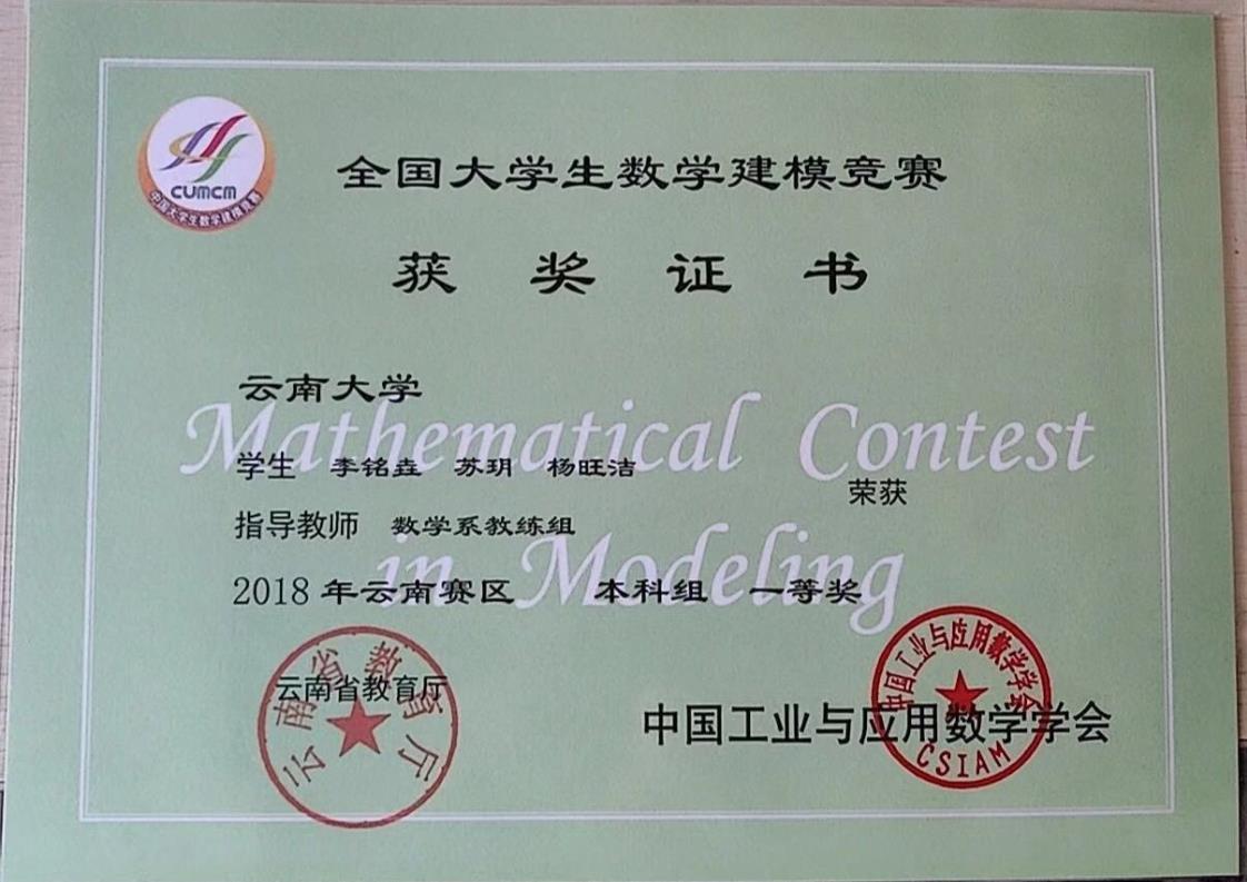 下一篇:李朝迁老师带学生获全国大学生数学建模竞赛三等奖