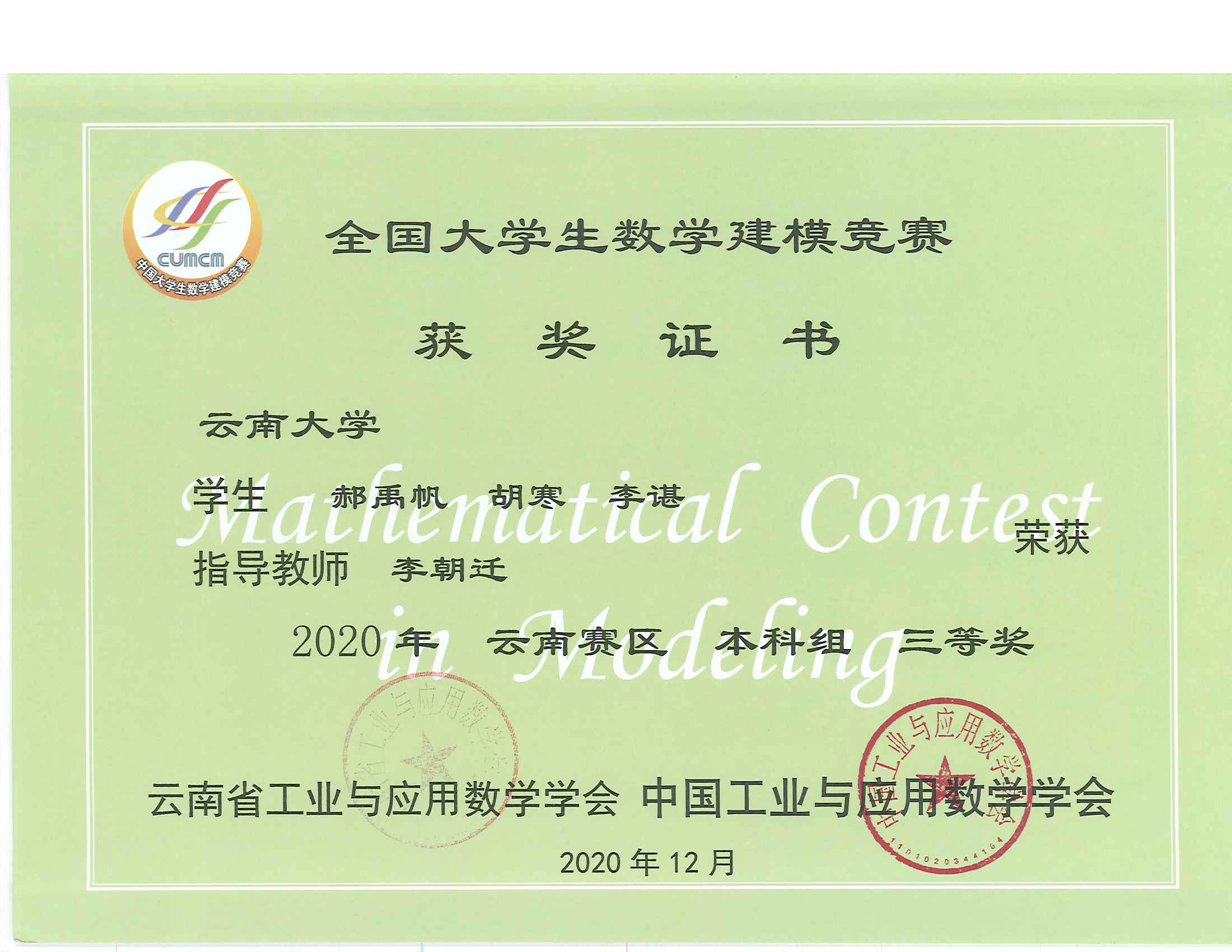 下一篇:李朝迁老师带学生获数学建模大赛李全国二等奖