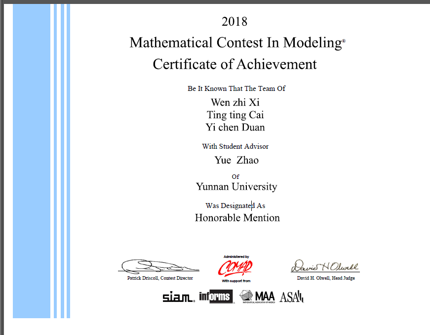 上一篇:赵越-指导大学生参加美国大学生数学建模竞赛获特等奖提名奖