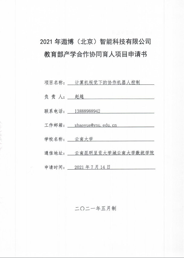 下一篇:赵越-2021年第二批-遨博(北京)智能科技有限公司-云南大学-计算机视觉下的协作机器人控制合作协议