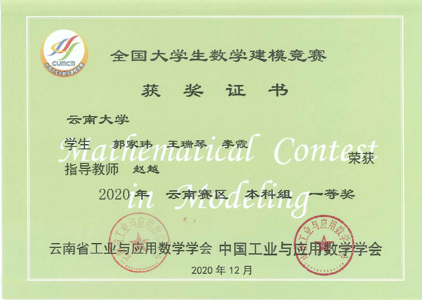 下一篇:赵越老师带学生荣获全国大学生数学建模竞赛一等奖