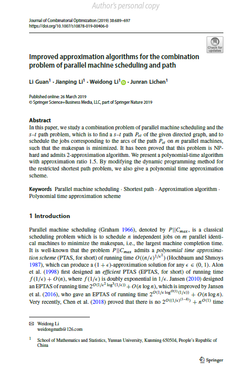 下一篇:李伟东-Improved approximation algorithms for the combination problem of parallel machine scheduling and path-作者版1